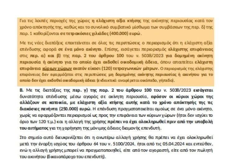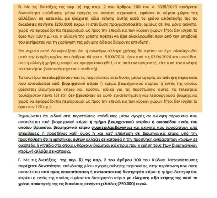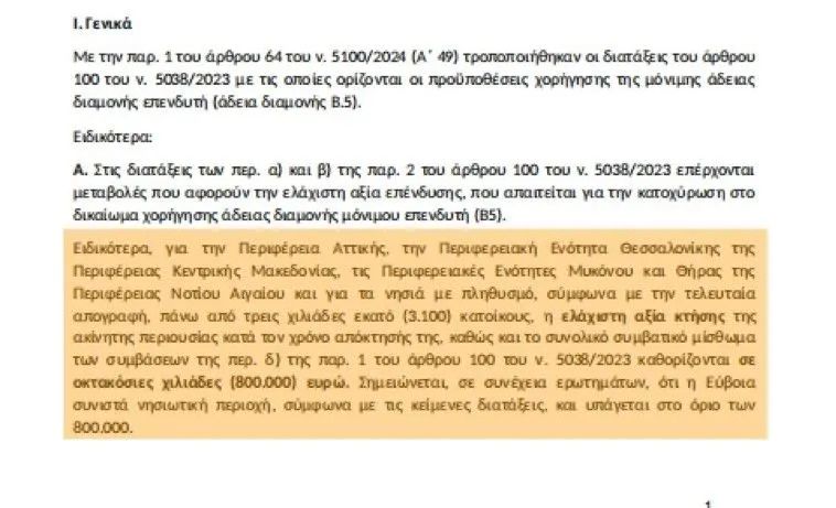 阿提卡大区,塞萨洛尼基大区,中央马其顿大区,南爱琴海群岛的大区(包括米科诺斯和圣托里尼岛),投资金额最低门槛依然是80万欧元。进一步明确埃维亚岛属于法律规定的特殊岛屿,适用80万欧元的投资门槛;